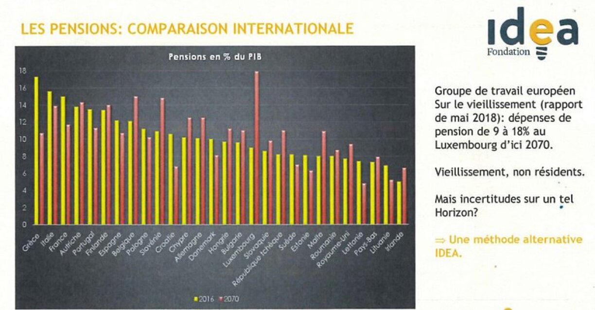 Preuve en est cette comparaison internationale qui prédit que d’ici 2070, le Luxembourg va devenir le pire pays européen en matière de part de pension dans le PIB (de 9% actuellement à 18% en 2070).