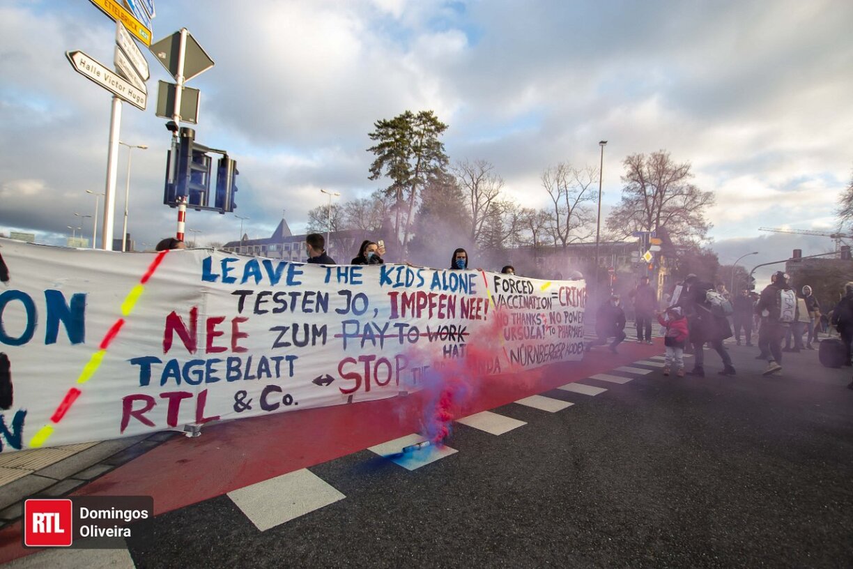 Environ 500 personnes se sont réunies en début d’après-midi pour protester contre la “dictature sanitaire” imposée par le gouvernement. Contre les “lois liberticides”, contre la vaccination des enfants, contre le CovidCheck... Les manifestants ont appelé le Premier ministre a changé de cap: “Cher Bettel, soit tu te mets de notre côté, le côté du peuple, soit tu te mets contre nous” crachait le haut-parleur en début de rassemblement.