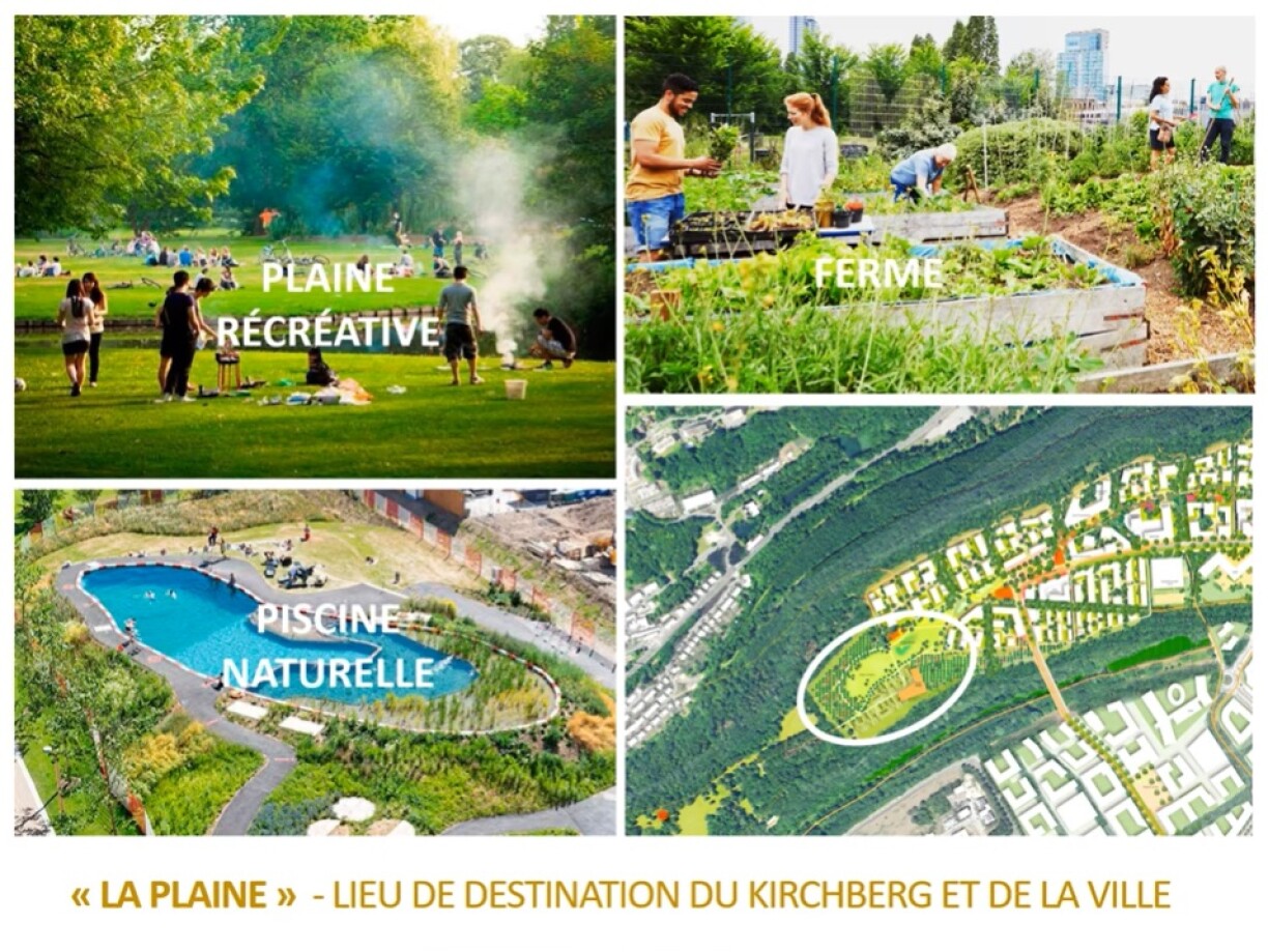 À l’extrémité sud-ouest du plateau, la ville s’effacera au profit d’une plaine, de vergers, d’une ferme urbaine et d’une étonnante piscine naturelle.