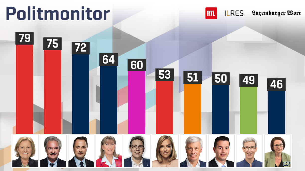 Ce troisième volet du sondage Politmonitor réalisé par Ilres pour RTL et le Luxemburger Wort livre le nouveau classement des politiciens selon le degré de sympathie et de compétence que leur donnent aujourd’hui les électeurs.