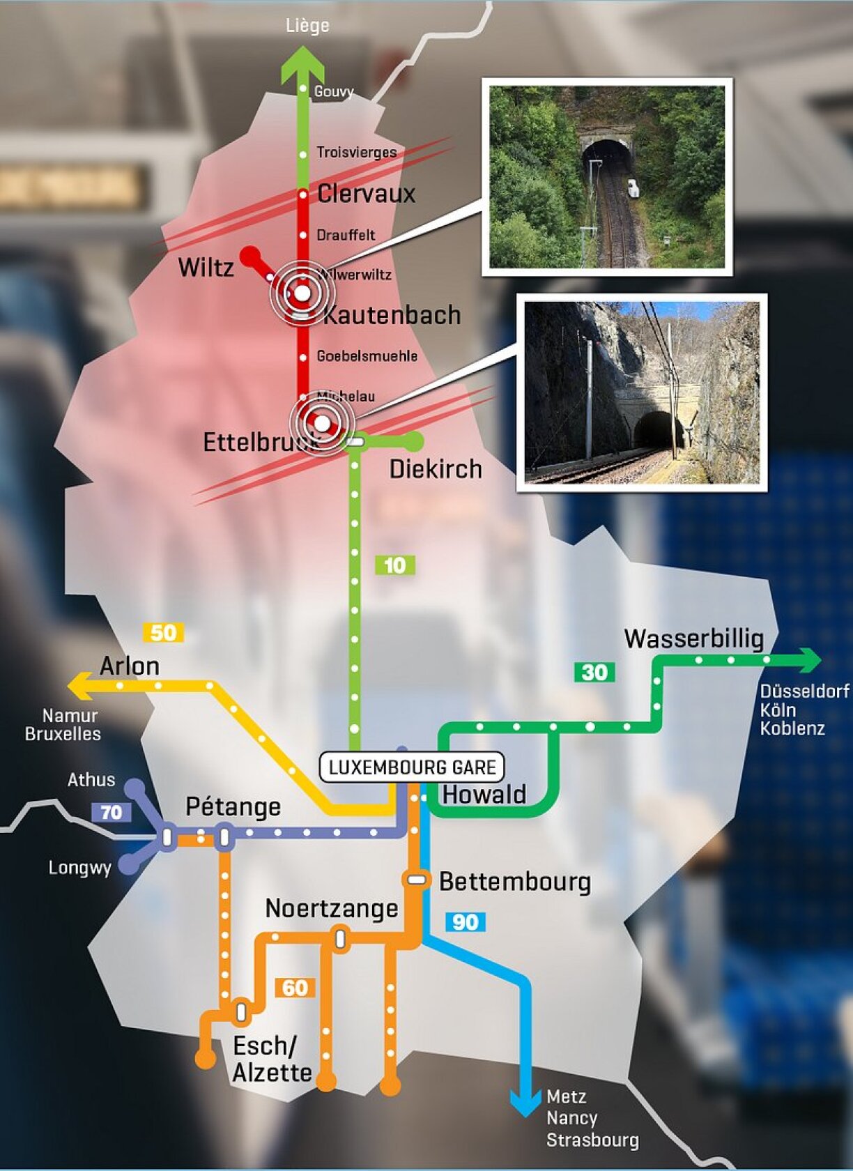 Au Luxembourg, 5% des lignes de train, soit environ 13 kilomètres, traversent des roches, dont 8,5 kilomètres au nord d’Ettelbruck. Environ 1,2 million d’euros sont investis chaque année pour développer ces lignes.