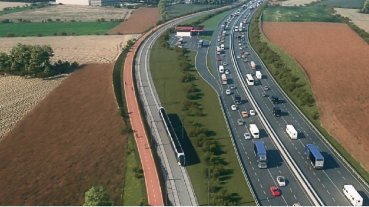 À l’horizon 2035, l’A4 devenue une A3 “bis” tant le trafic y est congestionné aux heures de pointe, sera complètement remodelée entre Luxembourg et Esch. C’est un vrai “couloir multimodal” qui va être créé par l’élargissement de l’autoroute, la création d’un tram rapide et d’une piste vélo express qui longeront l’A4 sur sa gauche, dans le sens descendant.