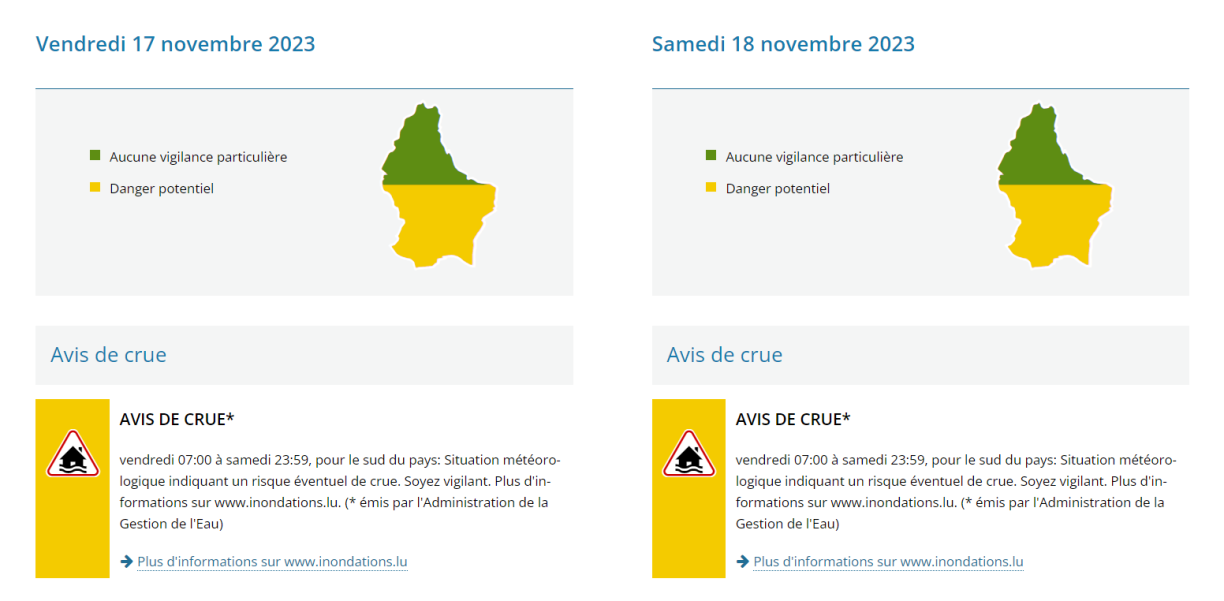 Le site officiel inondations.lu demande aux citoyens de rester vigilants aux abords des cours d’eau du pays, principalement le long de la Moselle. Après une courte baisse des niveaux, ceux-ci devraient remonter à partir de samedi.