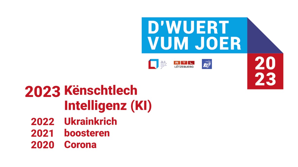 Le mot de l’année 2023 est donc: “KI” ! Mais qu’est-ce que cela veut donc bien dire ? Il ne s’agit pas d’un cri, mais bien d’une abréviation comme nous l’utilisons d’ailleurs aussi en français: “IA”, kënschtlech Intelligenz - intelligence artificielle.
