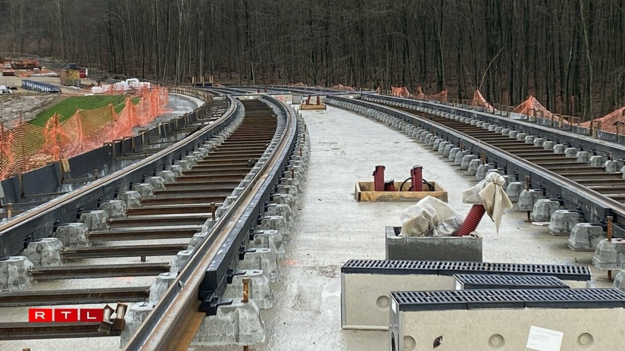 Les rails du tramway sont déjà posés sur quasiment toute la longueur du pont. Après le congé collectif, les dernières vis des rails seront fixées. Les travaux seront ainsi terminés fin janvier, début février. Tout comme ceux posés à la Cloche d’or, les rails ont été fabriqués au Luxembourg sur le site d’ArcelorMittal à Rodange.