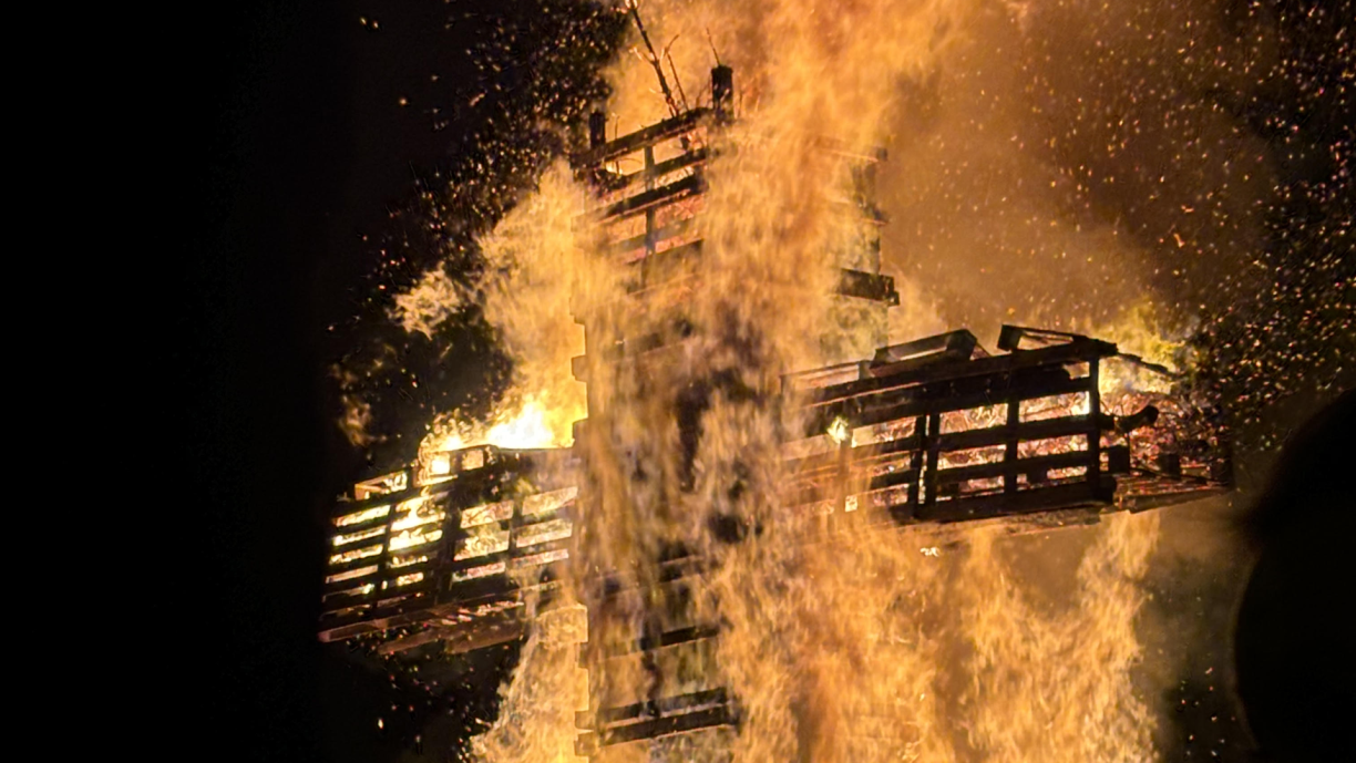 L'un des plus grands Buergbrennen du pays a eu lieu dimanche dans la commune de Niederanven, organisé par le 'Buergfrënn'.Le groupe a travaillé dur ces deux dernières semaines pour allumer son feu de joie. Cependant, le processus proprement dit commence chaque année en novembre, lorsque deux architectes élaborent les plans du bûcher.Une fois qu'une proposition a été retenue, le matériel peut être rassemblé. Cette année, l'équipe a rassemblé 2000 palettes et 70 kg de clous pour allumer le feu de joie dans un champ entre Niederanven et Munsbach.