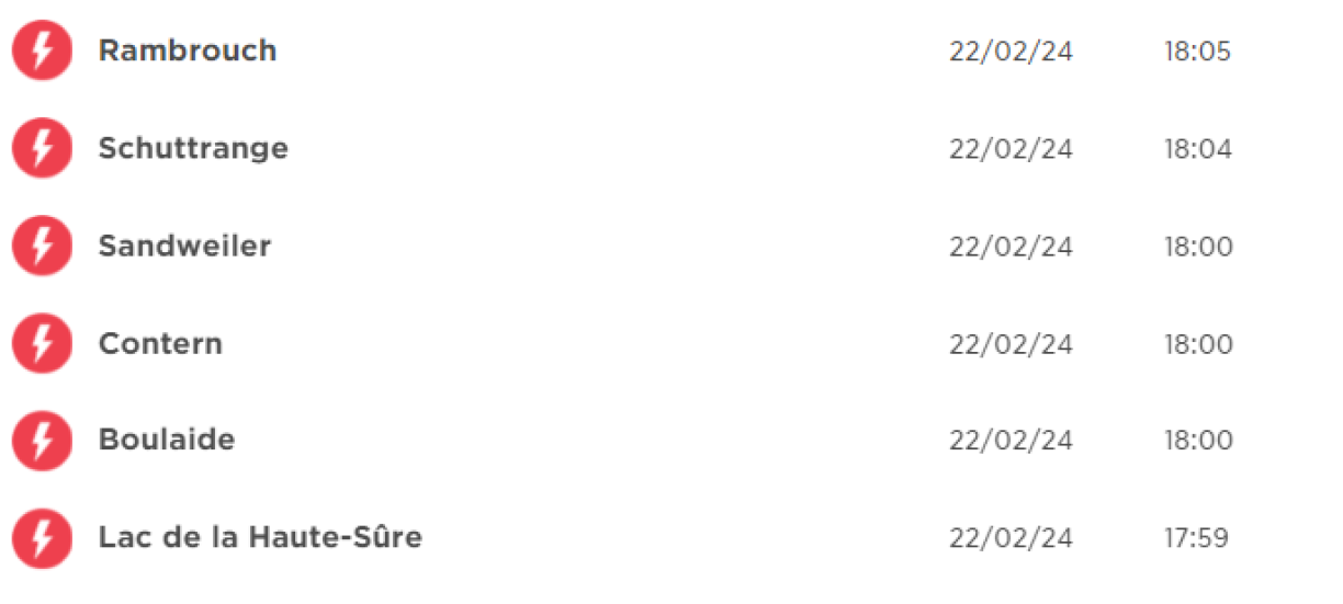 Le fournisseur d'électricité Creos a signalé sur son site internet des pannes électriques jeudi soir dans les communes de Rambrouch, Schuttrange, Sandweiler, Contern, Boulaide, Lac de la Haute-Sûre et Winseler.