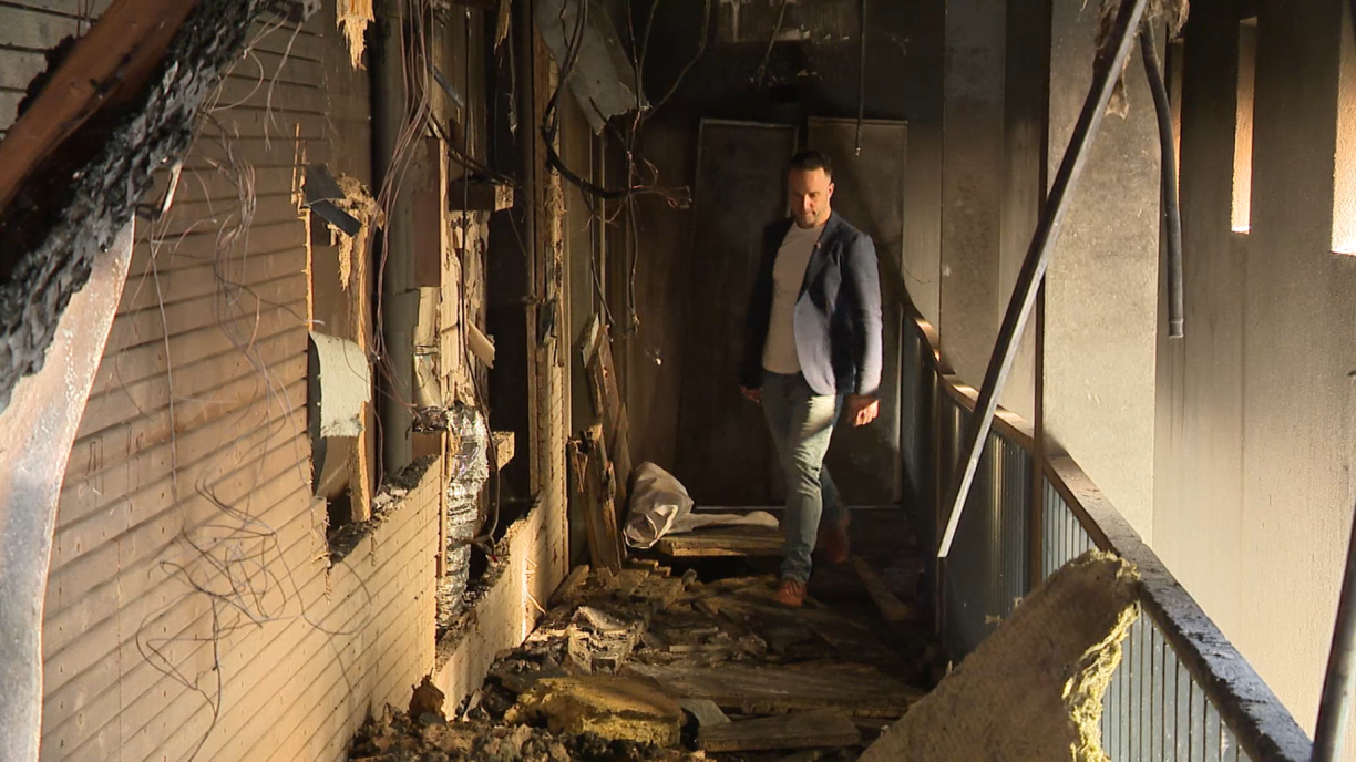L’incendie s’est déclenché dans le bâtiment central et s’est ensuite propagé durant de longues heures dans la nuit du 26 au 27 janvier. Le bourgmestre de Junglinster, Ben Ries, a été tiré de son sommeil en pleine nuit. Six semaines plus tard, il a autorisé une équipe de RTL à l’accompagner pour une visite exclusive des décombres.