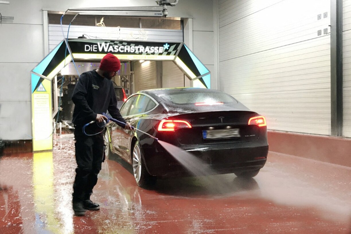 Dans certaines station de lavage ils proposent également un tel service directement à l’entrée, où un employé nettoie la voiture avec un nettoyeur haute pression. Demandez-lui de passer dessus une seconde fois.