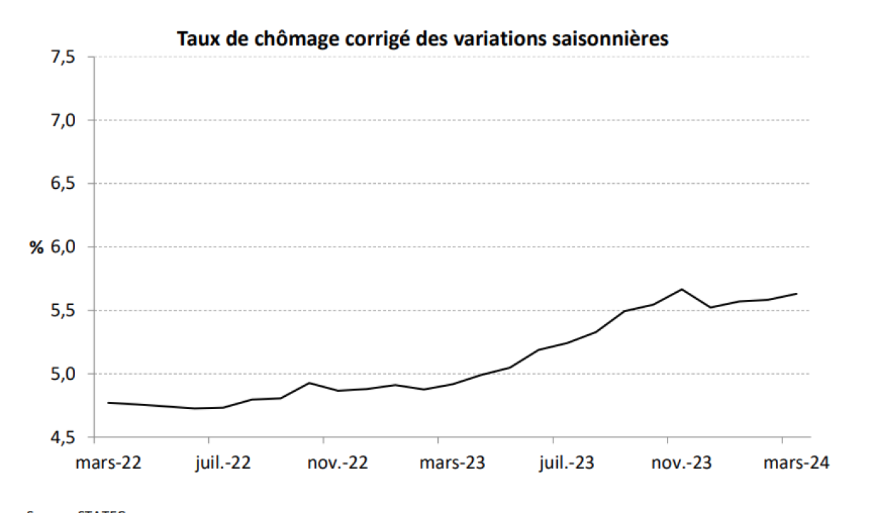 Le nombre de demandeurs d’emploi résidents qui bénéficient de l’indemnité de chômage complet a progressé de 1.982 personnes ou de 24,5% sur un an, pour s’établir à 10.073 au 31 mars 2024.