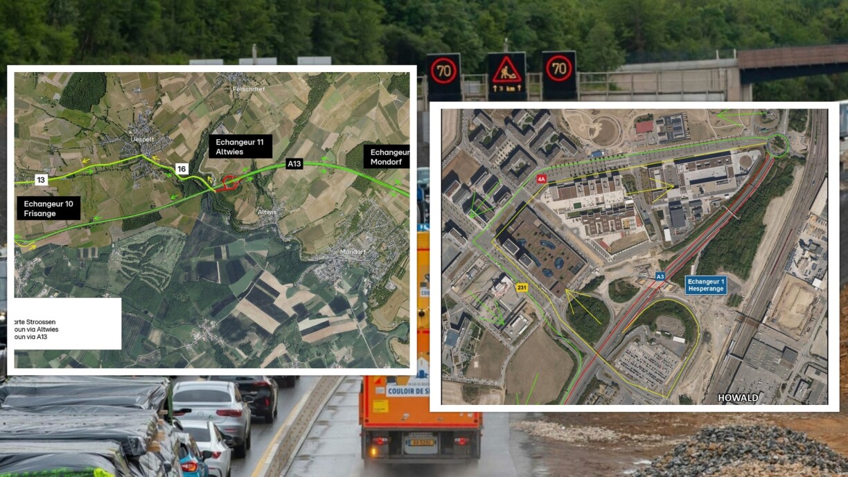 Les P&C indiquent que le trafic en provenance de l’A13 vers Schengen et en direction de Altwies sera dévié à partir de l’échangeur Altwies via l’A13 en direction de Schengen, l’échangeur Mondorf, l’A13 en direction de Bettembourg, l’échangeur Frisange, la N3, la N13 et la N16.
