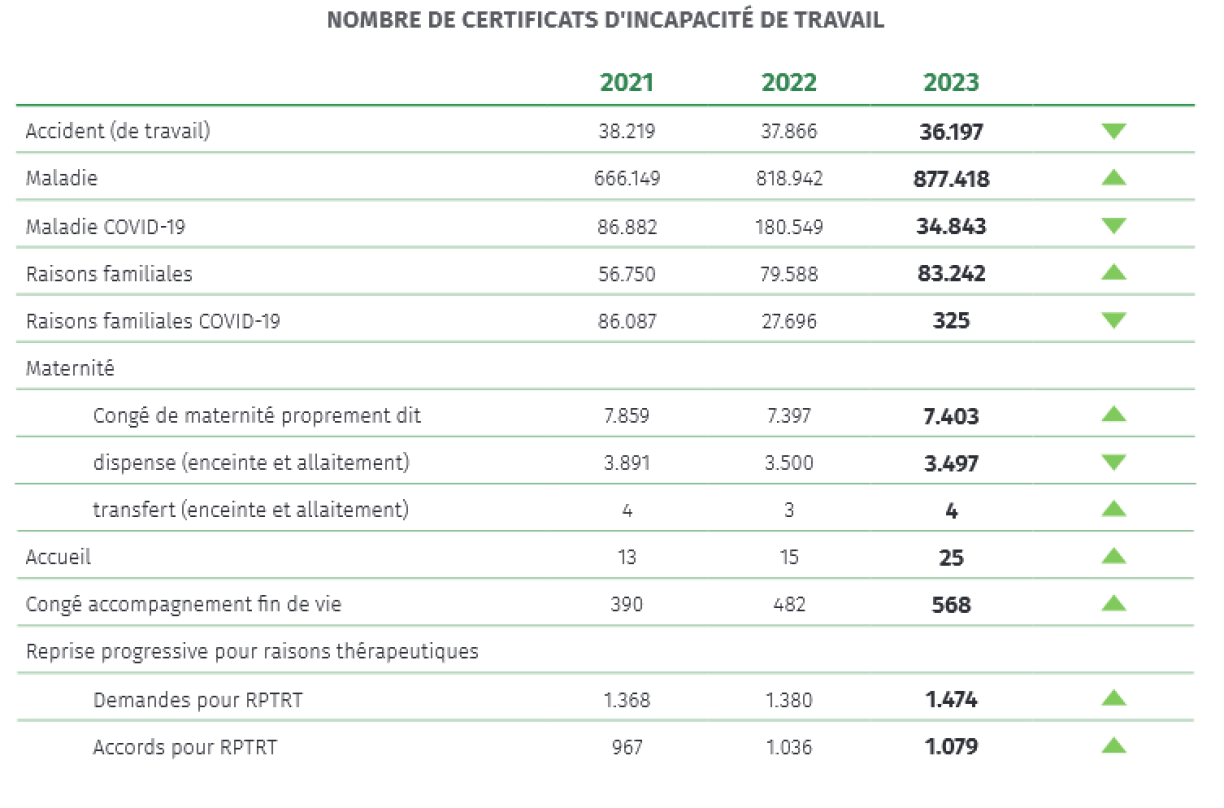 Ci-dessous, la CNS détaille notamment l’évolution des différents types de certificats d’incapacité de travail.