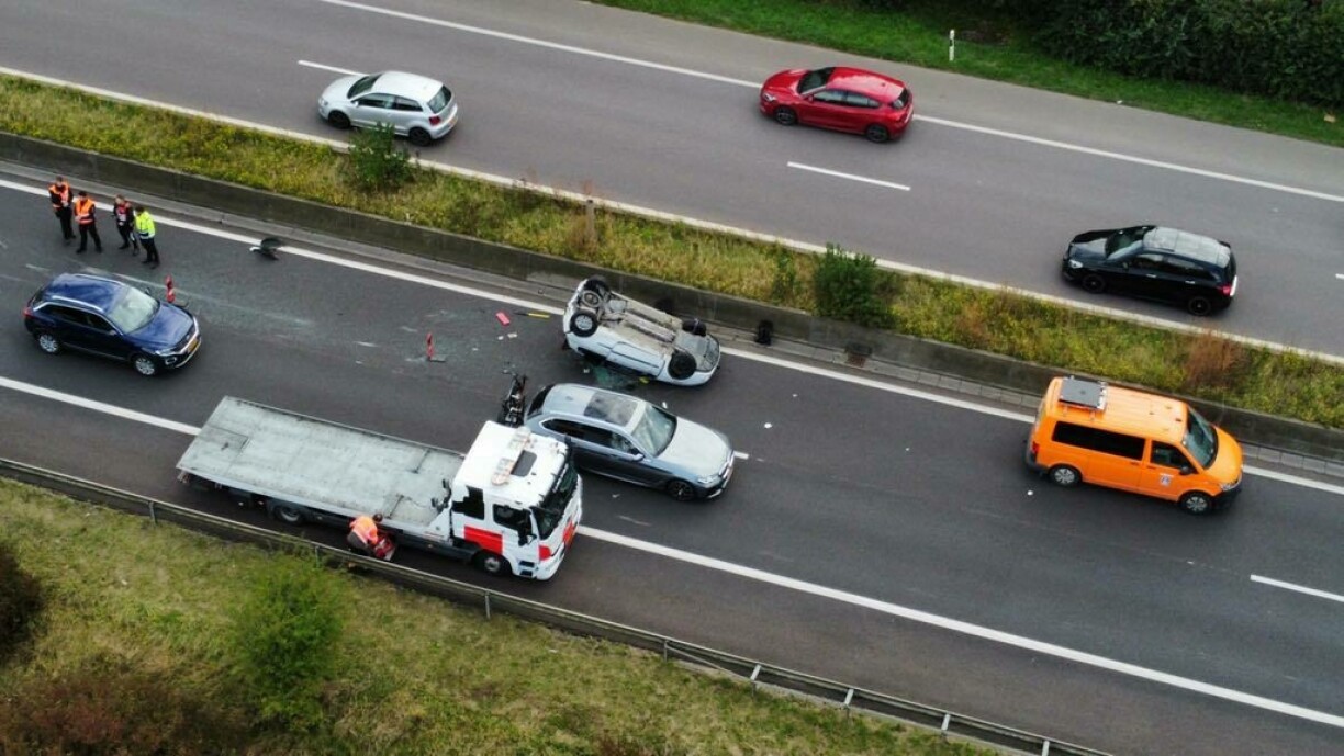Deux blessés, voiture sur le toitUn accident a paralysé l'A13 à Kayl