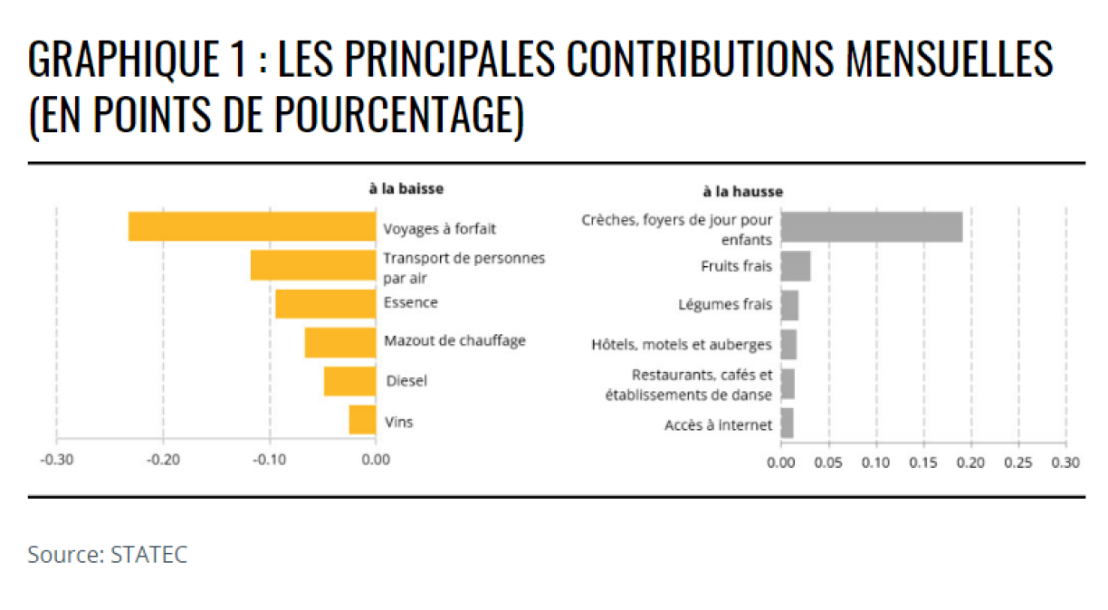 Une baisse significative a également touché les voyages organisés. Les vacanciers ont payé leurs séjours 10,1% moins chers en septembre qu’en août. Les prix des billets d’avion ont même diminué “en moyenne de 20% par rapport au mois d’août”, assure le Statec.