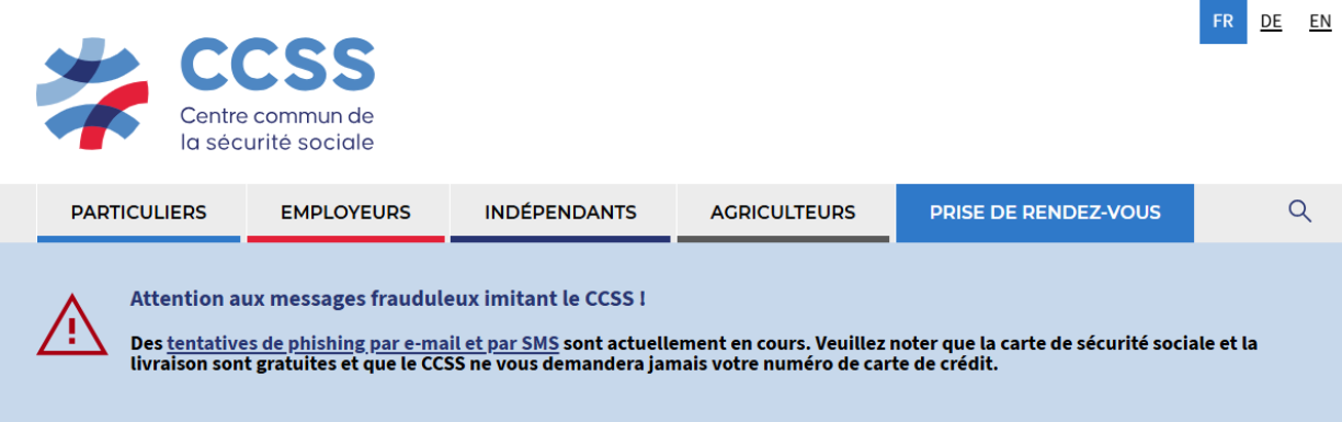 Des e-mails sont envoyés depuis l'adresse (officielle) information@ccss.lu et informent les destinataires qu'ils doivent renouveler leur carte de sécurité sociale moyennant un paiement en ligne.