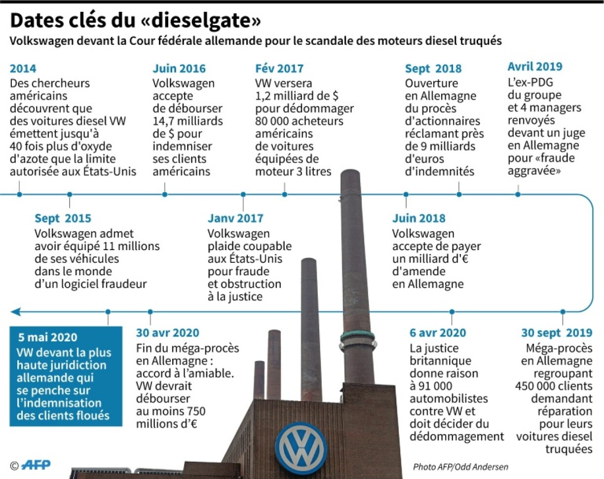 Le “dieselgate”, qui a donné lieu à de nombreuses actions en justice à travers le monde, a déjà coûté 30 milliards d’euros à Volkswagen, en grande partie aux Etats-Unis où le groupe allemand a plaidé coupable de fraude en 2017.