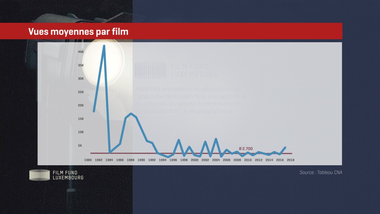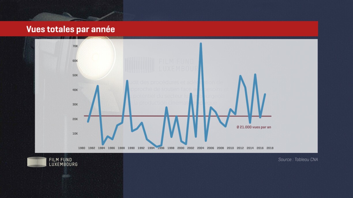 Le nombre de productions audiovisuelles - ainsi que le nombre de sociétés de production et le coût par film - n’a fait que croître depuis l’existence des aides. Mais parallèlement, les films attirent de moins en mois de visiteurs. Ainsi, 3,5 résidents sur 100 regardent un film luxembourgeois au moins une fois par an.