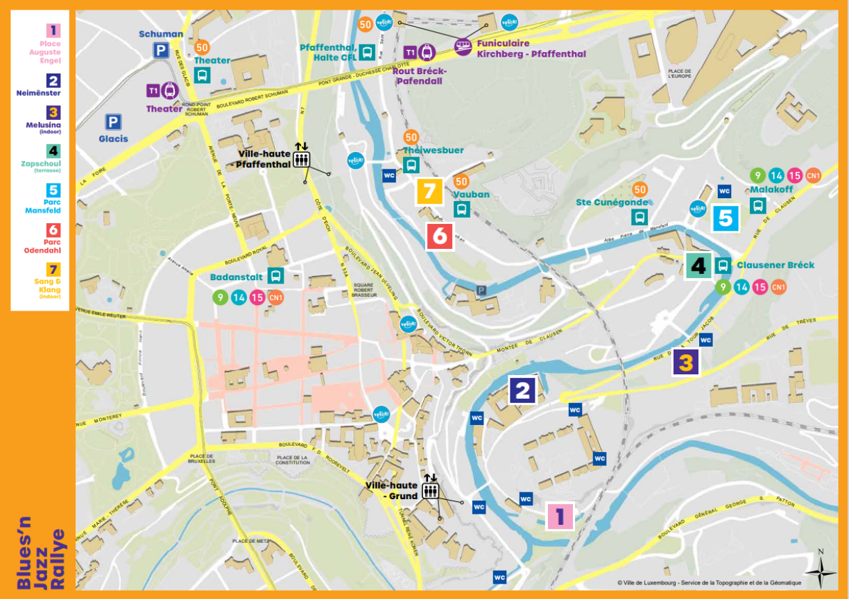 La Ville de Luxembourg nous a confirmé que des navettes spéciales (ligne 50- Blues’n Jazz Rallye) sont prévues entre 17h30 et 3h30. Elles partiront du parking Glacis, passeront par Pfaffenthal puis Clausen et le centre-ville avant de revenir au Glacis.