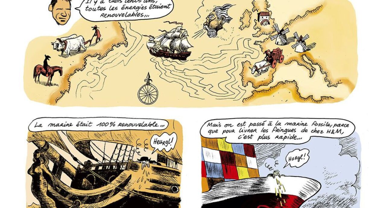 Cette BD est précieuse car elle réunit deux excellents vulgarisateurs. Et il faut avoir ce talent pour expliquer les rouages de l’économie pétrolière, d’une centrale nucléaire, du réchauffement climatique ou encore de l’appauvrissement des sols.