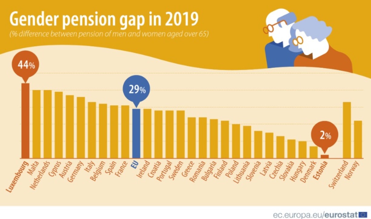 Les femmes restent à ce titre bien plus concernées par des interruptions de carrière pour des raisons familiales. Et lorsqu’arrive l’heure de la retraite, cela leur coûte souvent très cher...surtout au Luxembourg! Selon une publication d’Eurostat (voir ci-dessous), l’écart de pension entre hommes et femmes était de 44% au Luxembourg en 2019. Il s’agissait alors du pire écart en Europe.