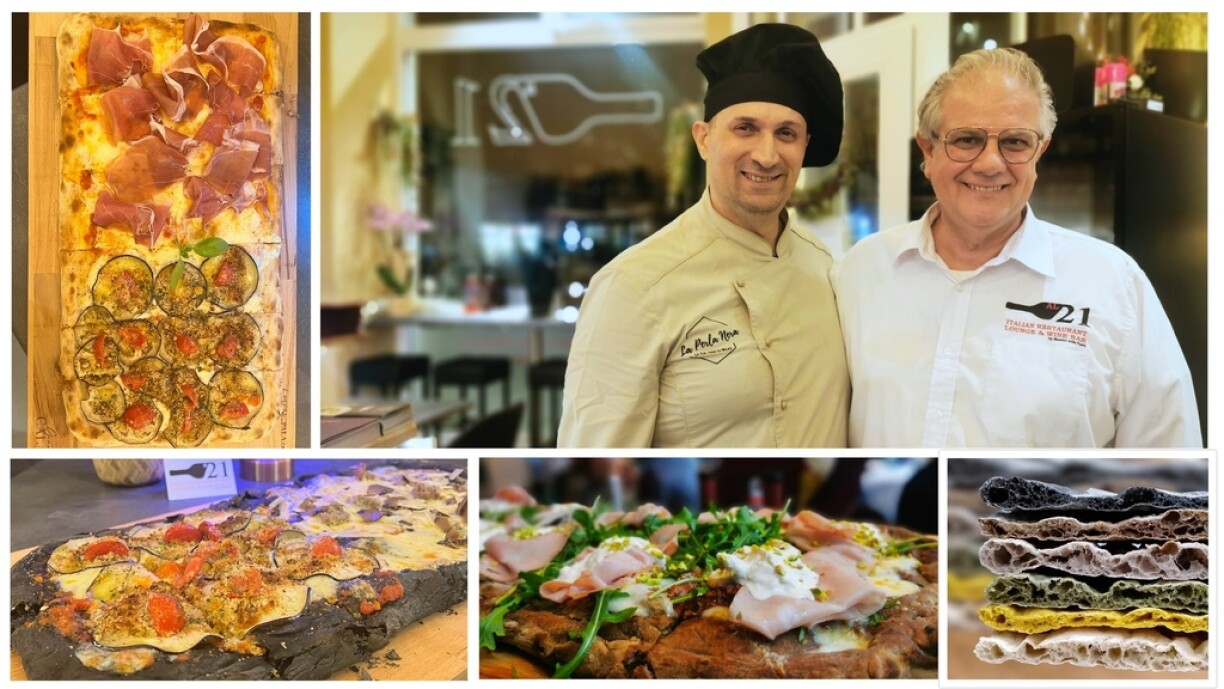 La recette de ses fameuses pizzas “in pala” est bien gardée. Son créateur, Gianni Calaon, a été 5 fois champion du monde de pizza. Sa pâte est travaillée à la main avec de la levure naturelle sèche et lève durant trois jours, avant d’être précuite 30 secondes puis emballée sous atmosphère modifiée. Cela permet à la pâte de “voyager” de l’Italie à l’étranger et d’être consommée plusieurs jours après son élaboration. Au “AL 21”, les commandes sont ainsi passées le samedi et les pâtes à pizza sont réceptionnées le jeudi. “Cela nous permet d’être constant dans la qualité de nos pizzas, même si le chef n’est pas là” précise le propriétaire du restaurant. Après l’avoir garni dans sa cuisine, le chef Francesco Martinelli n’a plus qu’à la passer deux minutes au four à 450 degrés. “La pizza est fraîche comme si la pâte venait à peine d’être pétrie” promet-il.