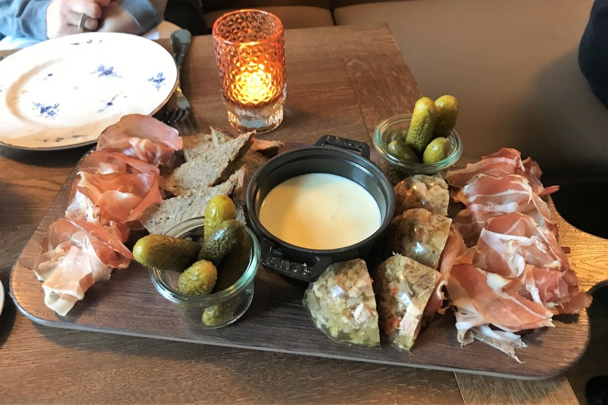 Avant cela, on partagera volontiers une planche généreuse avec de bonnes charcuteries (jambons cru et cuit, terrine, porc en gelée, pâté au Riesling) et un excellent kachkéis.
