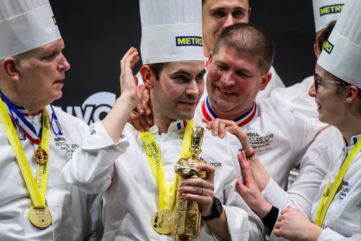 Et puis, le moment tant attendu. “Après Régis, ce sera Paul!”, a lancé Jérôme Bocuse, président du concours, en ouvrant l’enveloppe contenant le nom du vainqueur, évoquant la victoire de Marcon père au Bocuse d’Or trente ans plus tôt, en 1995.