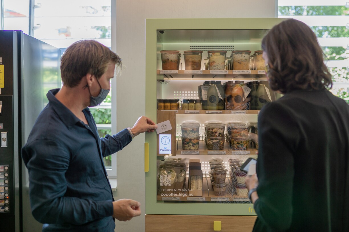 Chaque jour, le frigo propose un assortiment savoureux de plats et boissons concoctés à base de produits frais. Le principe est le même que pour un distributeur de snacking ou de boissons: l’utilisateur se connecte, prend le menu qui l’intéresse et paye par l’intermédiaire de son smartphone ou de son badge. Le frigo peut être installé dans n’importe quelle entreprise et est géré manière totalement automatique grâce à la technologie NFC présente dans la plupart des badges d’entreprises.