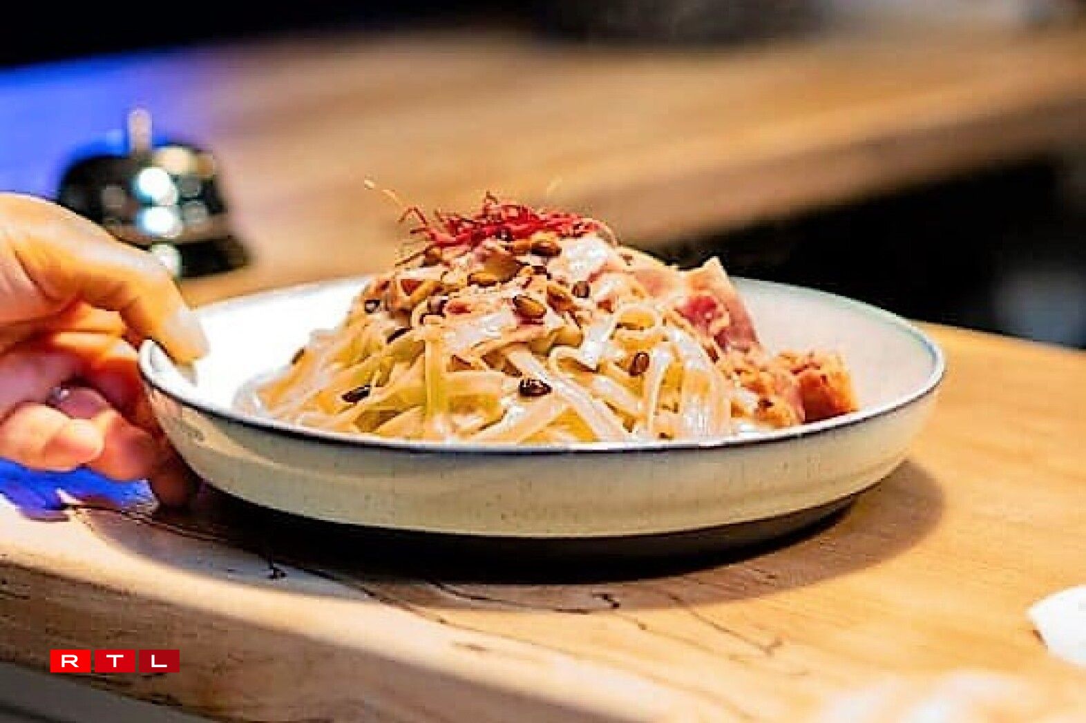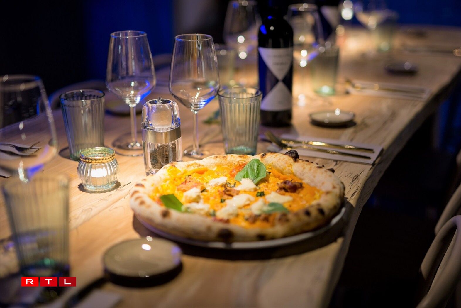 L’équipe a repensé l’endroit qui n’avait guère connu de restaurant remarquable en déplaçant le bar, en ajoutant des belles lumières, des plantes, un néon bleu, une cuisine à vue et une petite carte italienne réduite, mais bien sentie.