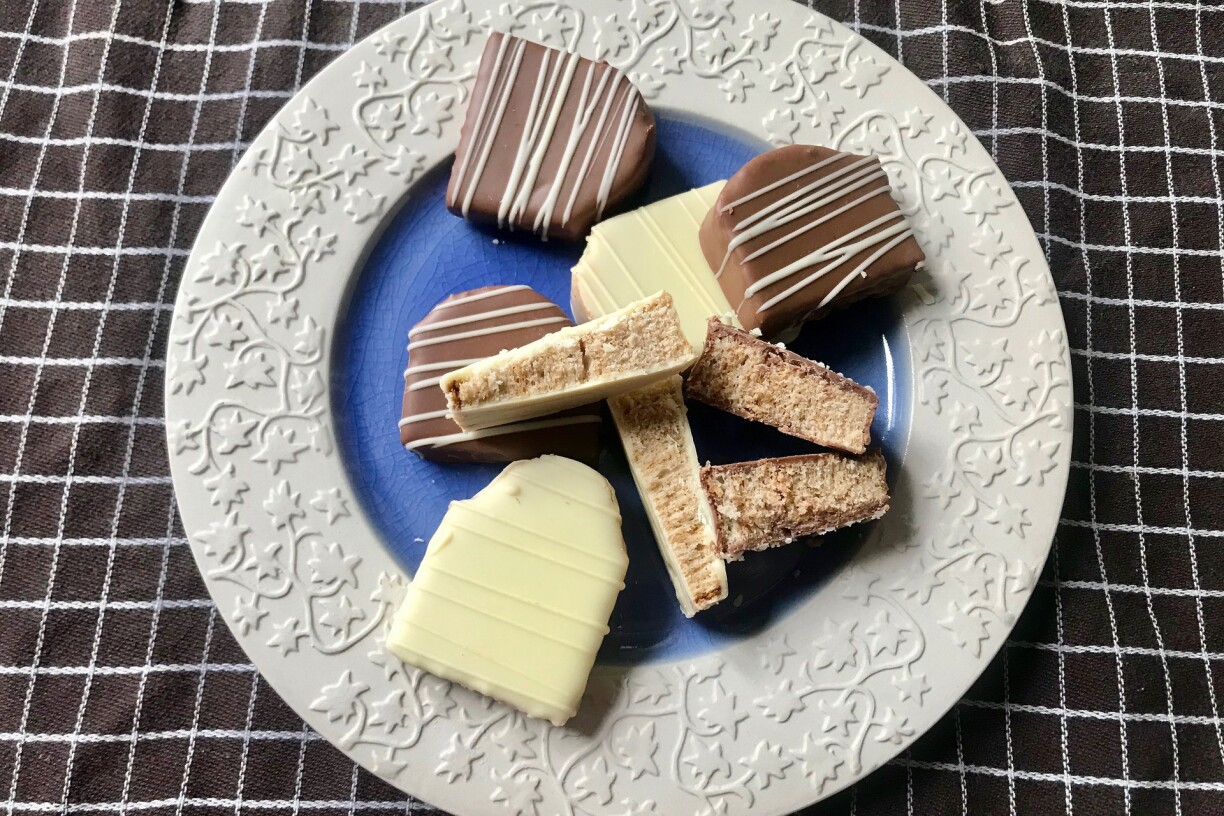 Pour le rendre plus moderne, tout en respectant la recette originale, la pâtisserie Bak Kreatioun coupe le gâteau en petites portions et le recouvre de chocolat... Une gourmandise irrésistible à dénicher chez Wanderscheid à Luxembourg-Ville.