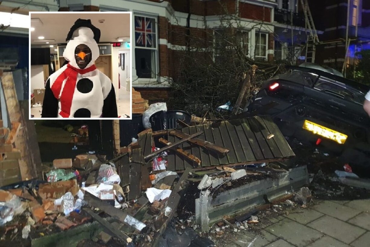Il a malencontreusement terminé sa course dans un mur situé devant une maison, vraisemblablement après avoir heurté un panneau routier. Le joueur est ensuite apparu en train de sortir de son véhicule fumant, toujours déguisé, pendant que des badauds filmaient la scène.