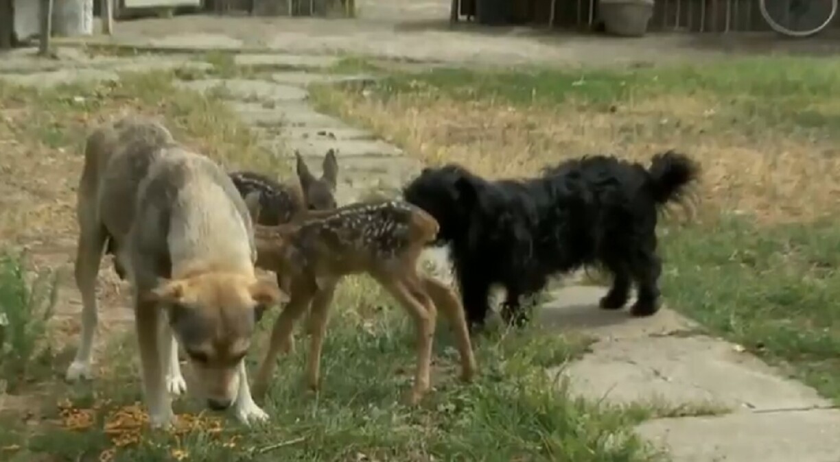 Le petit cerf a été trouvé par un habitant dans un parc de la ville. Il a ensuite été pris en charge par un refuge local. Et de suite, le faon a été adopté par les chiots, mais aussi par la maman. Une relation spéciale s’est directement nouée entre eux, comme une famille.