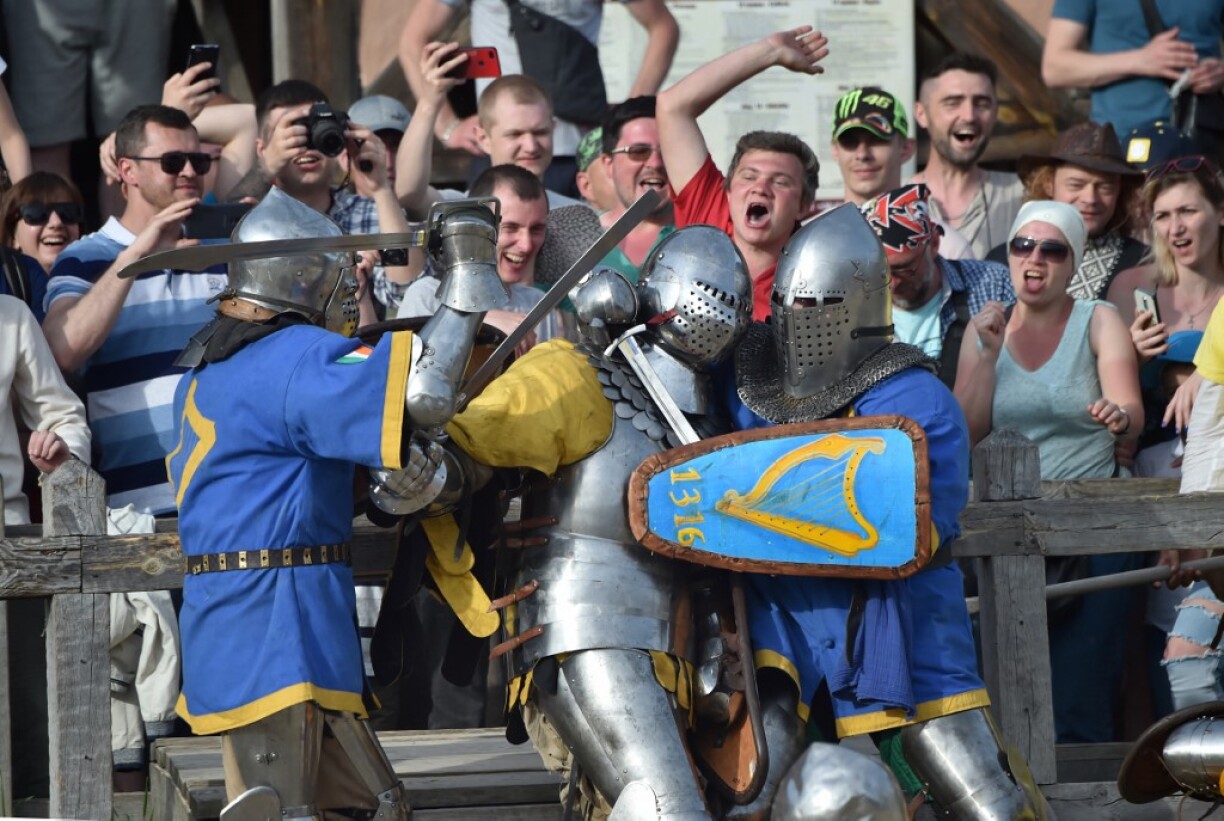 Vingt-neuf équipes venues notamment de Grande-Bretagne, de Chine, de France, d’Allemagne et d’Australie se sont retrouvées pendant quatre jours dans ce village, à une centaine de kilomètres de Kiev, pour s’affronter avec des répliques d’armes en métal et en bois sur une arène de sable. Certains avaient choisi de se battre à cheval, d’autres à pied.