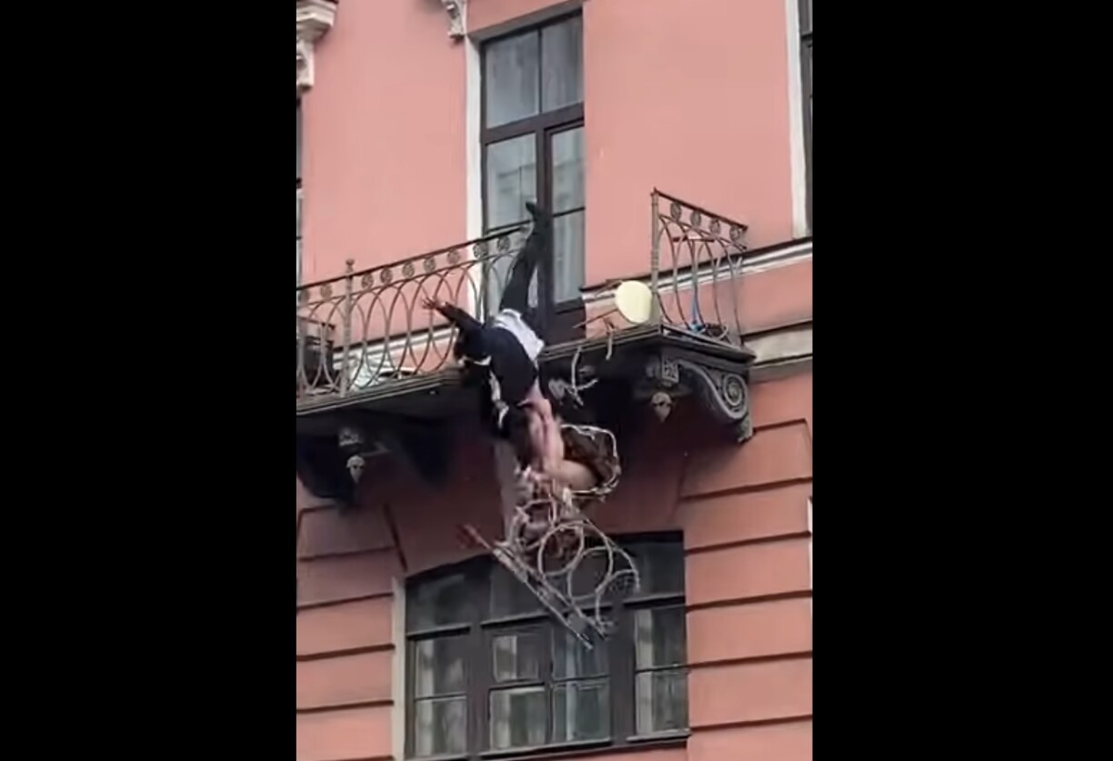 Olga et Yevgeny ne s’attendaient certainement pas à ce dénouement pendant leur dispute puisque sans crier gare, ils se sont retrouvés quelques mètres plus bas, sur le trottoir, après une rupture au niveau de la rambarde de sécurité provoquée par leurs mouvements.