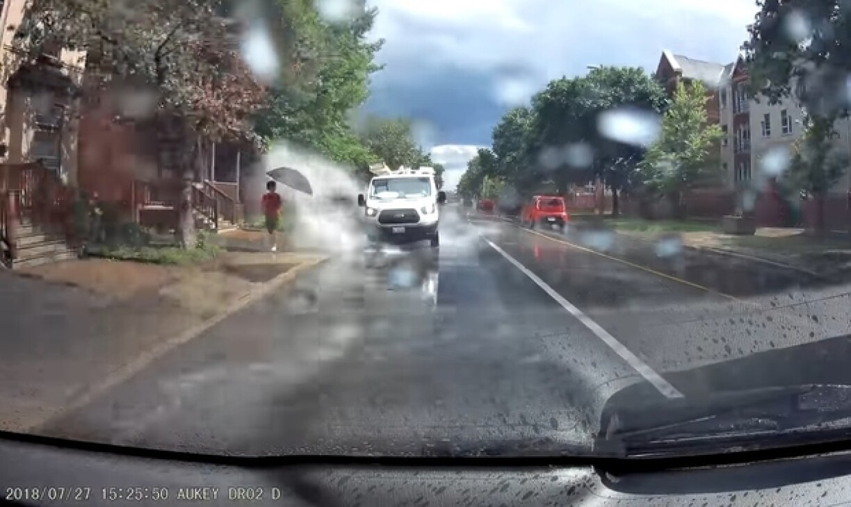 Le 27 juillet à Ottawa, alors qu’il a conduisait un van professionnel un jour de pluie, un ouvrier en a profité pour faire une blague au goût douteux: multiplier les écarts de conduite et foncer dans les flaques pour asperger les passants.