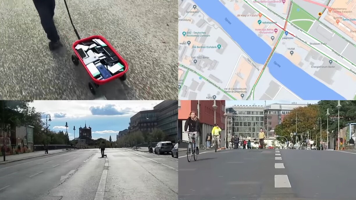 Simon Weckert, un artiste de Berlin, ne possède pas un smartphone. Il en a 99. Une belle collection qui lui a permis de réaliser un sacré tour de force en déviant tout le trafic des rues où il se promenait grâce à Google Maps.