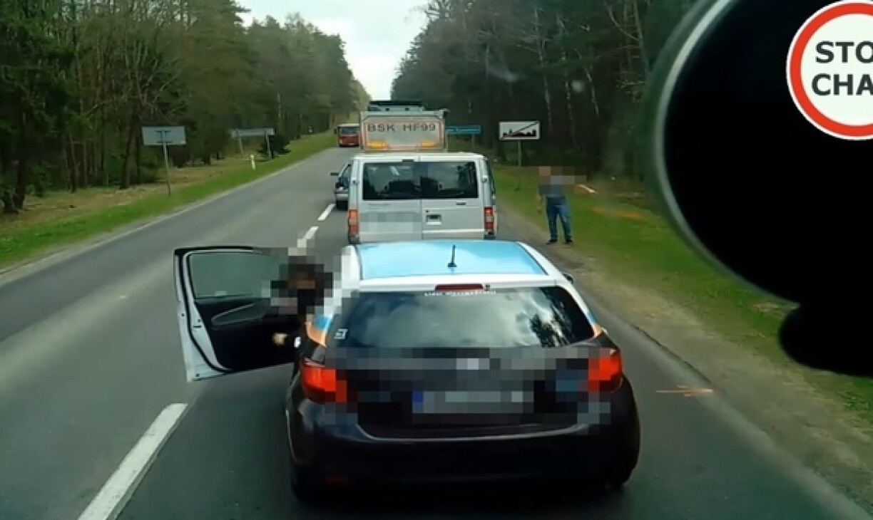 Visiblement effrayé par l’intervention du conducteur de poids lourd, l’homme au volant de la camionnette est descendu et a ramassé tout ce qu’il avait jeté.