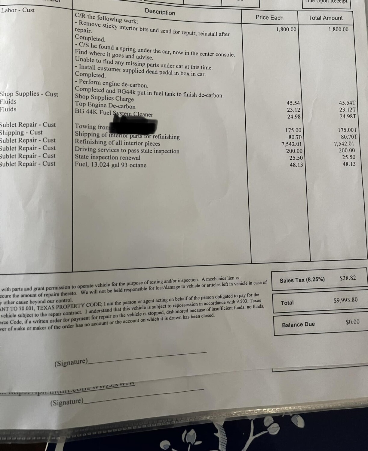 Facture à l’appui, il dit avoir dépensé près de 10 000 $ pour réparer le problème des boutons collants, chose qui arrive “à toutes les Ferrari” affirme-t-il. Dans les détails, la main-d’oeuvre a coûté 1.800 $, tandis que la “remise à neuf de toutes les pièces intérieures” lui a été facturée 7.542 $.
