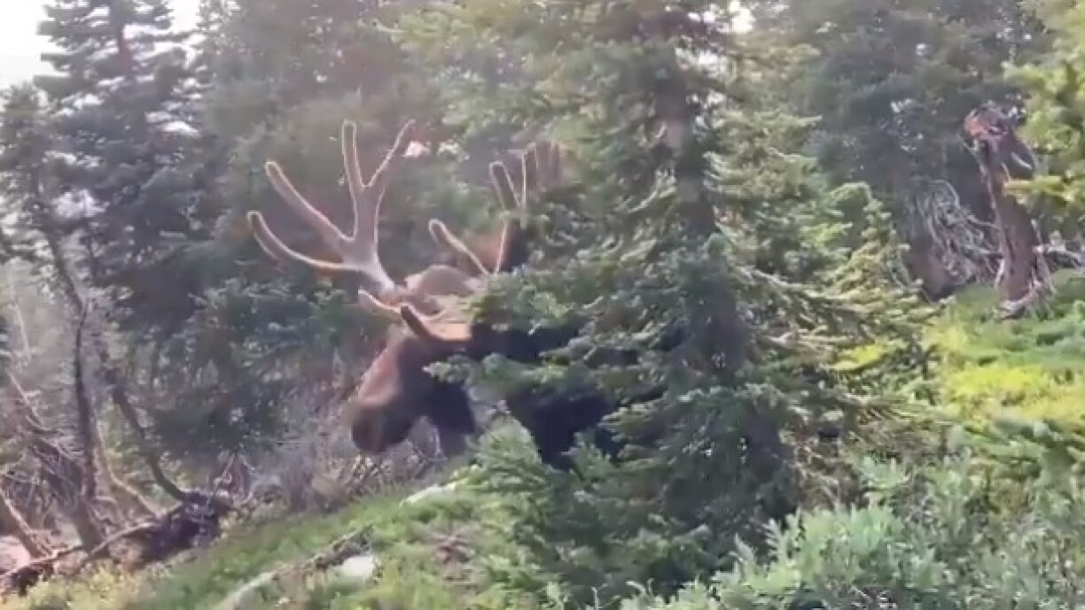 D’apparence paisible, l’orignal s’avère être peu effrayé par l’Homme et est capable de charger sans prévenir. C’est ce qui est arrivé à ce randonneur, qui a heureusement pu s’abriter derrière un arbre au dernier moment.