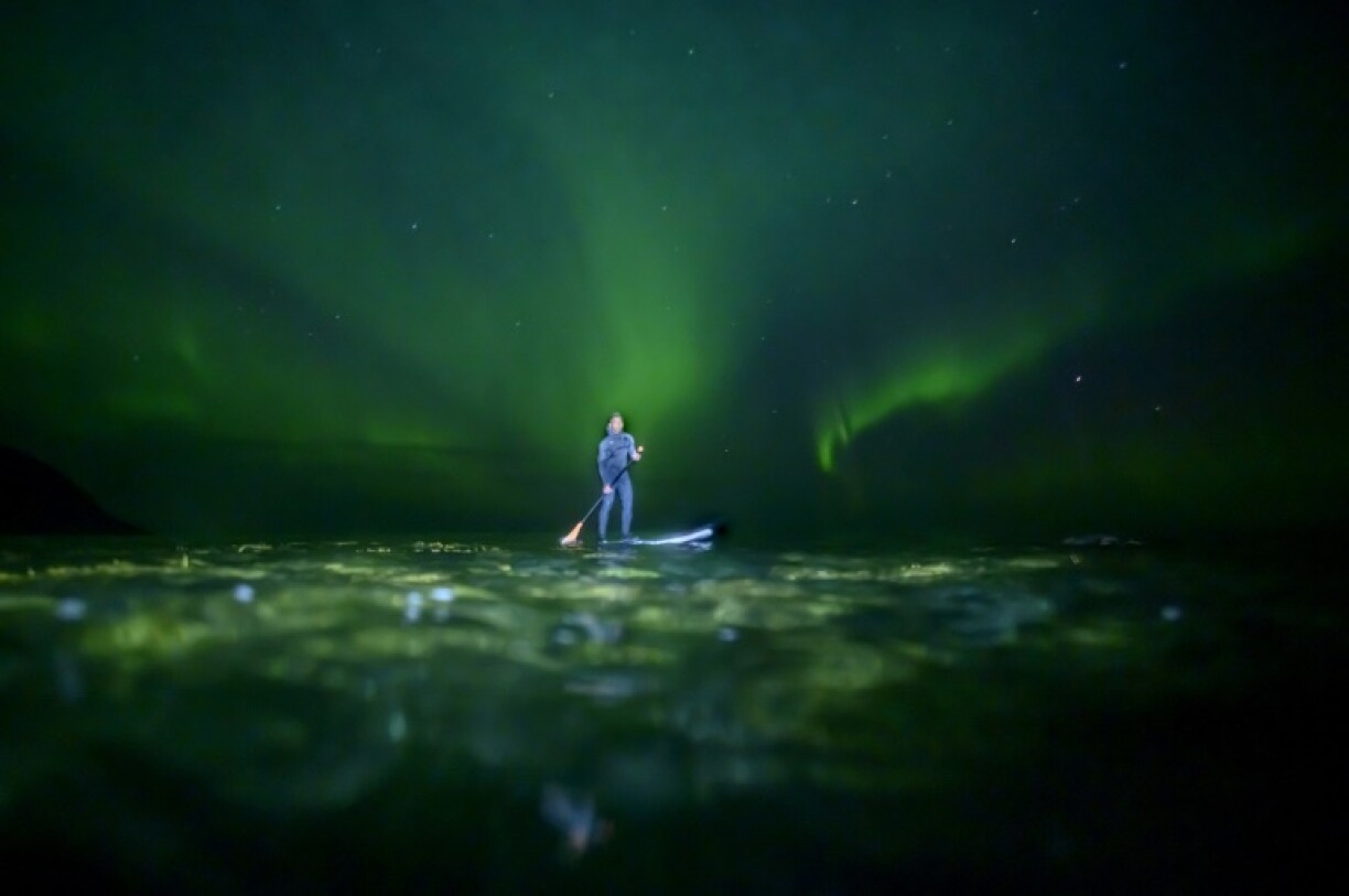 Surfeur indonésien, Edi Siswanto, revêtu de sa combinaison intégrale, évolue avec agilité sur les vagues. Equipé d’une rame, il profite de la magie des phénomènes lumineux du pôle arctique pour s’offrir une balade exceptionnelle.