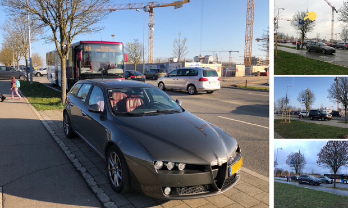 Après le SUV confortablement installé sur deux places au supermarché ou la petite citadine arrêtée dans un escalier en ville, nous avons trouvé non pas un mais plusieurs “champions” du stationnment. Ici, à Luxembourg-ville, plus précisément au Kirchberg.