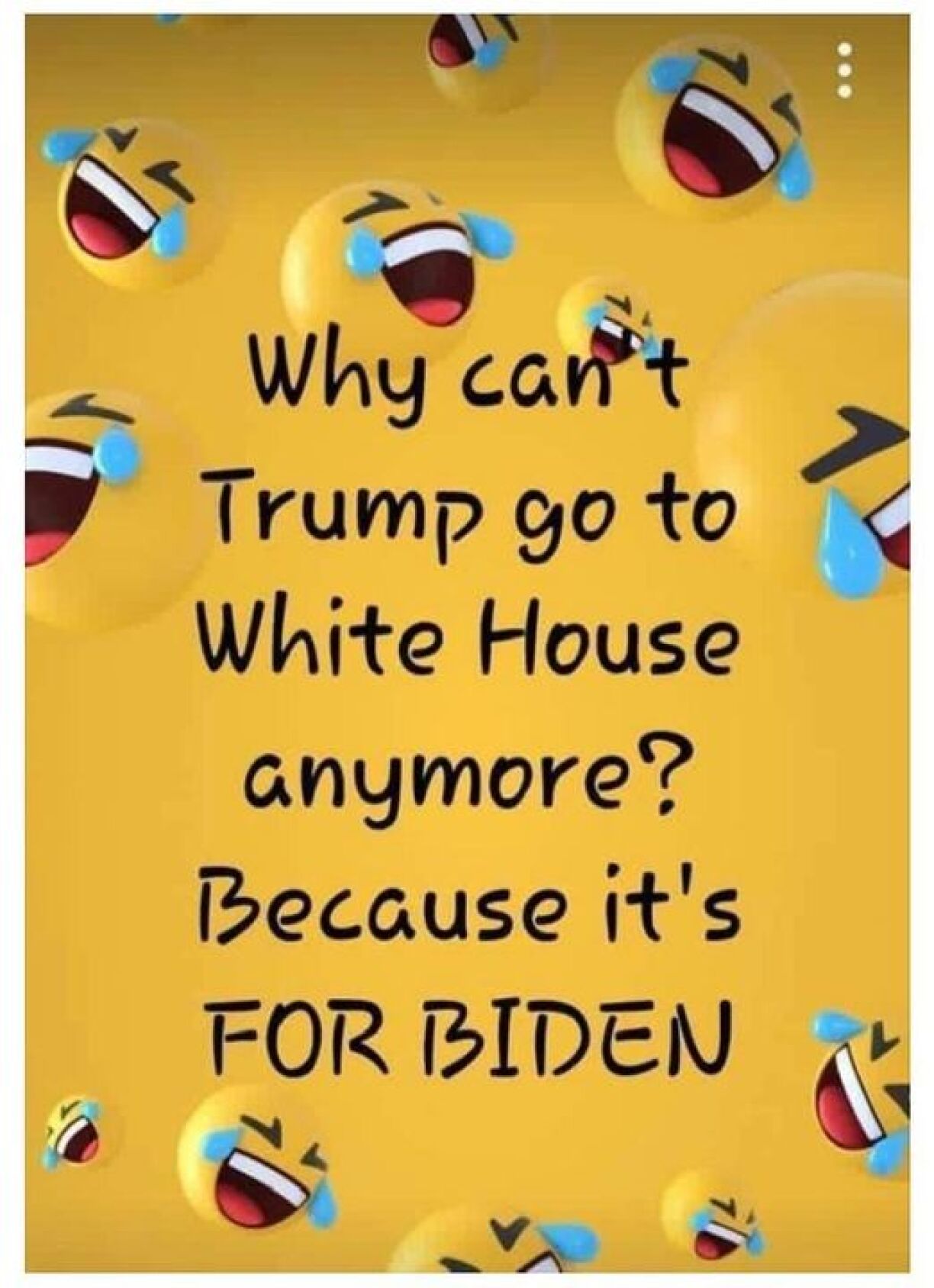 Les anglophones s’amuseront de ce calembour laissant entendre que Donald ne pourra plus retourner à la Maison Blanche car c’est “FOR BIDEN” (littéralement “pour Biden”, mais peut-être confondu avec “Forbidden"="interdit)