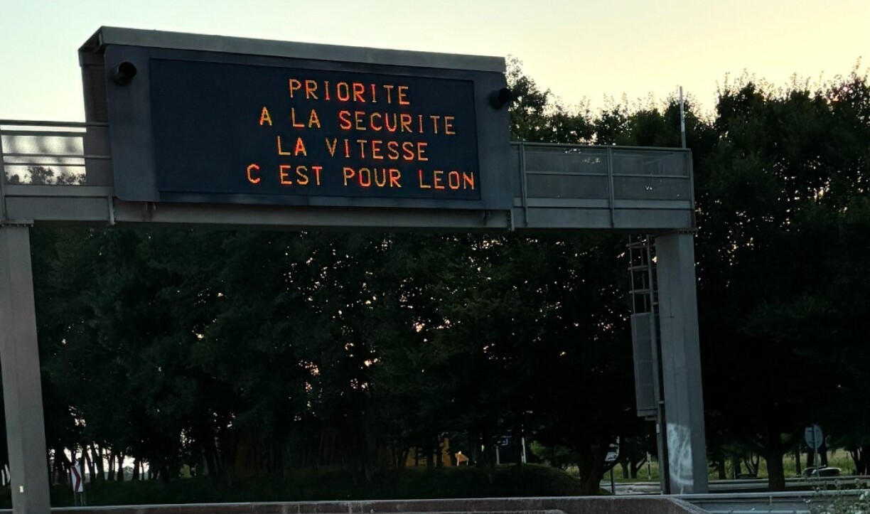 “Priorité à la sécurité, la vitesse c’est pour Léon”. C’est le message de prévention que pouvaient lire les automobilistes sur un panneau de l’autoroute A4 près de Brumath en Alsace. La Sanef, la société concessionnaire d’autoroutes qui a publié ce message humoristique semble également gagnée par la “Léonmania”. Dans son post sur X, le groupe précise: “la Sanef derrière les athlètes français et ça se voit ! Message clin d’œil ce soir sur nos panneaux à messages variables, mais toujours en #securite”.