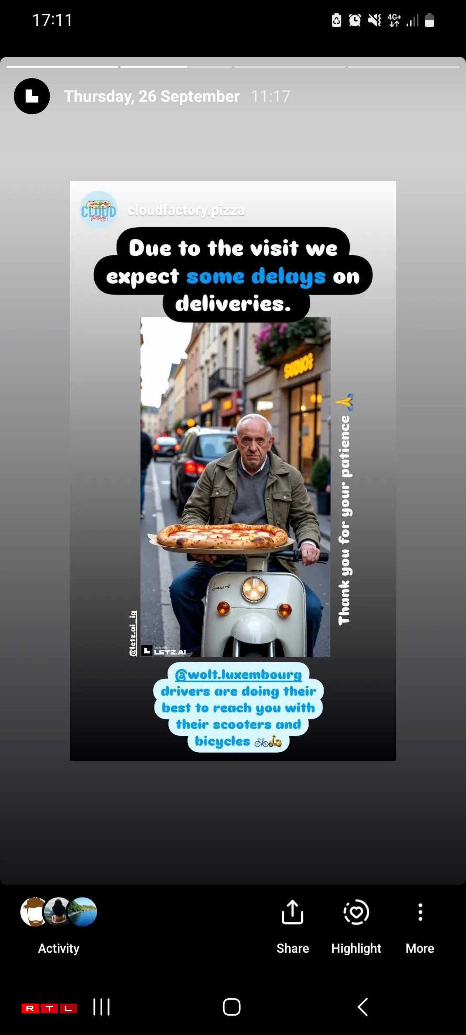L’une des images les plus populaires montre le pape François tenant une bière devant le palais grand-ducal de la ville de Luxembourg. Cette image générée par l’IA, créée par LetzAI (plateforme d’images basée au Luxembourg), a été partagée peu avant l’arrivée du pape et a gagné en popularité sur des plateformes comme Reddit et Facebook. Misch Strotz de LetzAI a souligné le succès de telles images, soulignant qu’“une image d’IA bien conçue peut être un outil marketing efficace”, en prenant en exemple le verre de bière sur l’image, qui ne portait aucun logo visible.