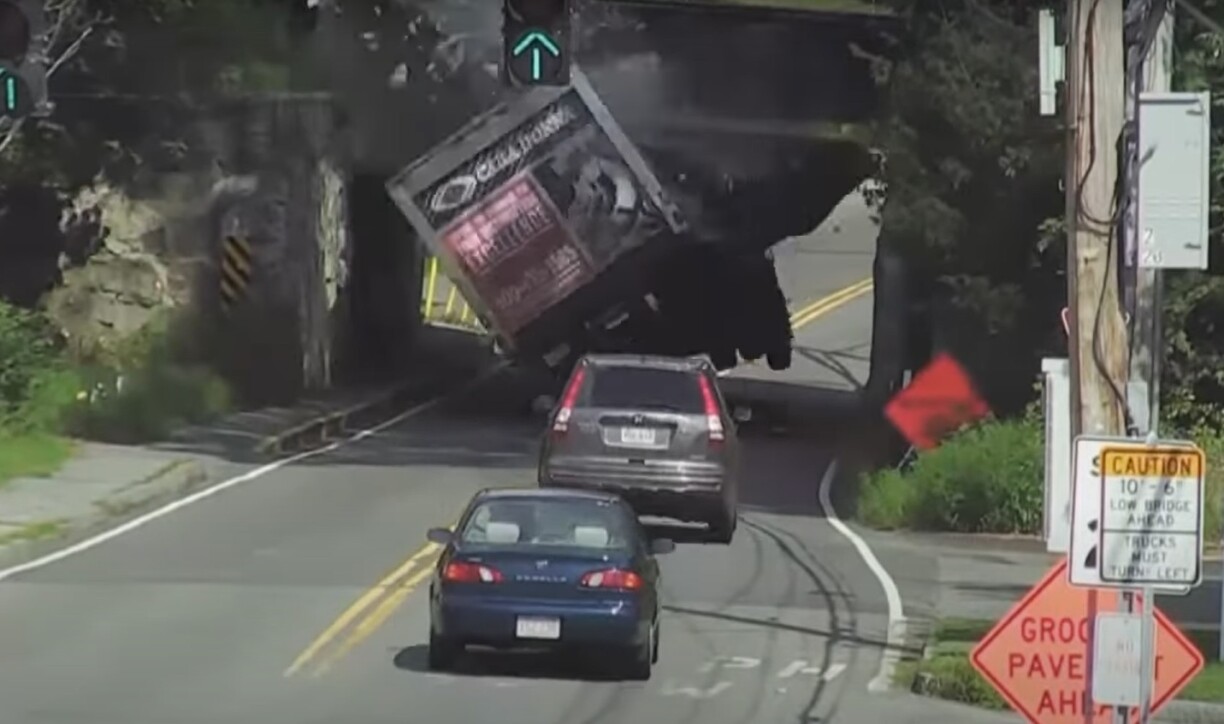 La vidéo spectaculaire d’un camion piégé sous un pont a ressurgi comme par magie sur le net. Partagée il y a 6 jours par plusieurs médias, notamment des médias automobiles (Turbo M6, AutoNews) et des sites communautaires américains (Reddit, 9gag), on y voit le véhicule se présenter face à un pont trop bas pour lui. Visiblement pas conscient du risque, le chauffeur s’y engouffre gaiement et le chargement de son camion vole en éclats au milieu des voitures, forcées de s’arrêter.