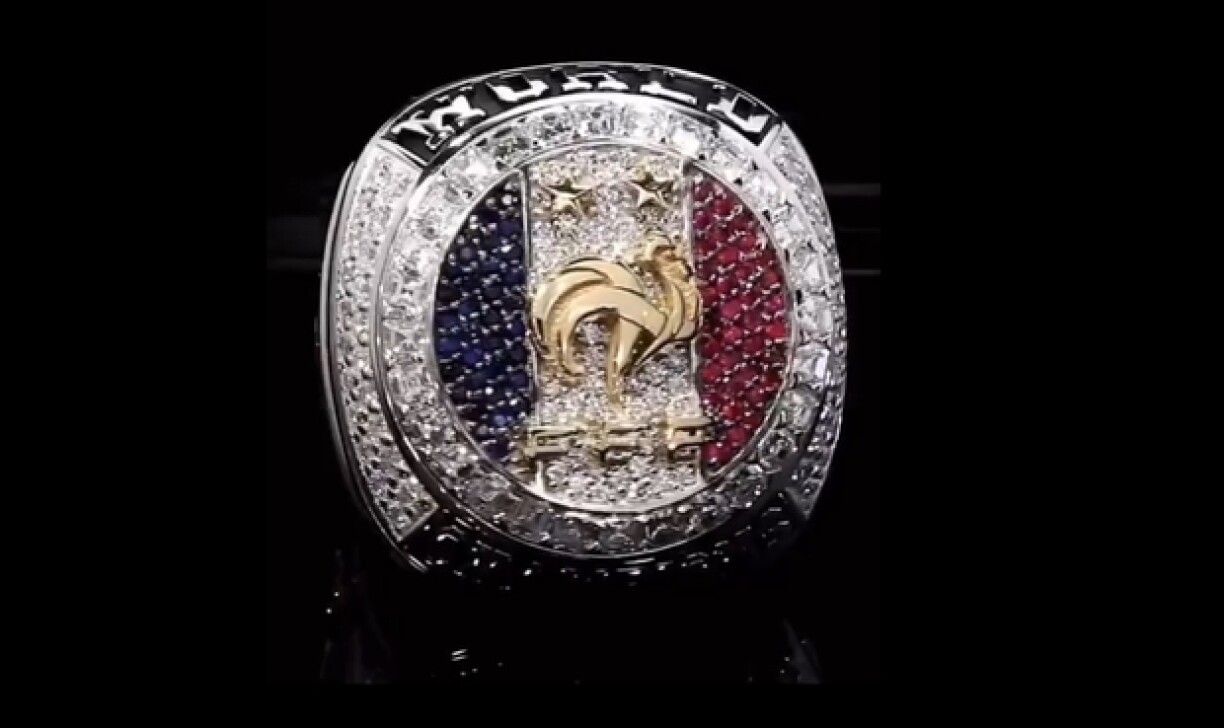 D’après L’Équipe, la bague est composée de trois carats de diamant blanc et un peu plus d’un demi-carat de rubis et de saphir bleu. Le dessus est orné du drapeau bleu-blanc-rouge et du logo de la Fédération française de football, avec bien sûr, les deux étoiles.