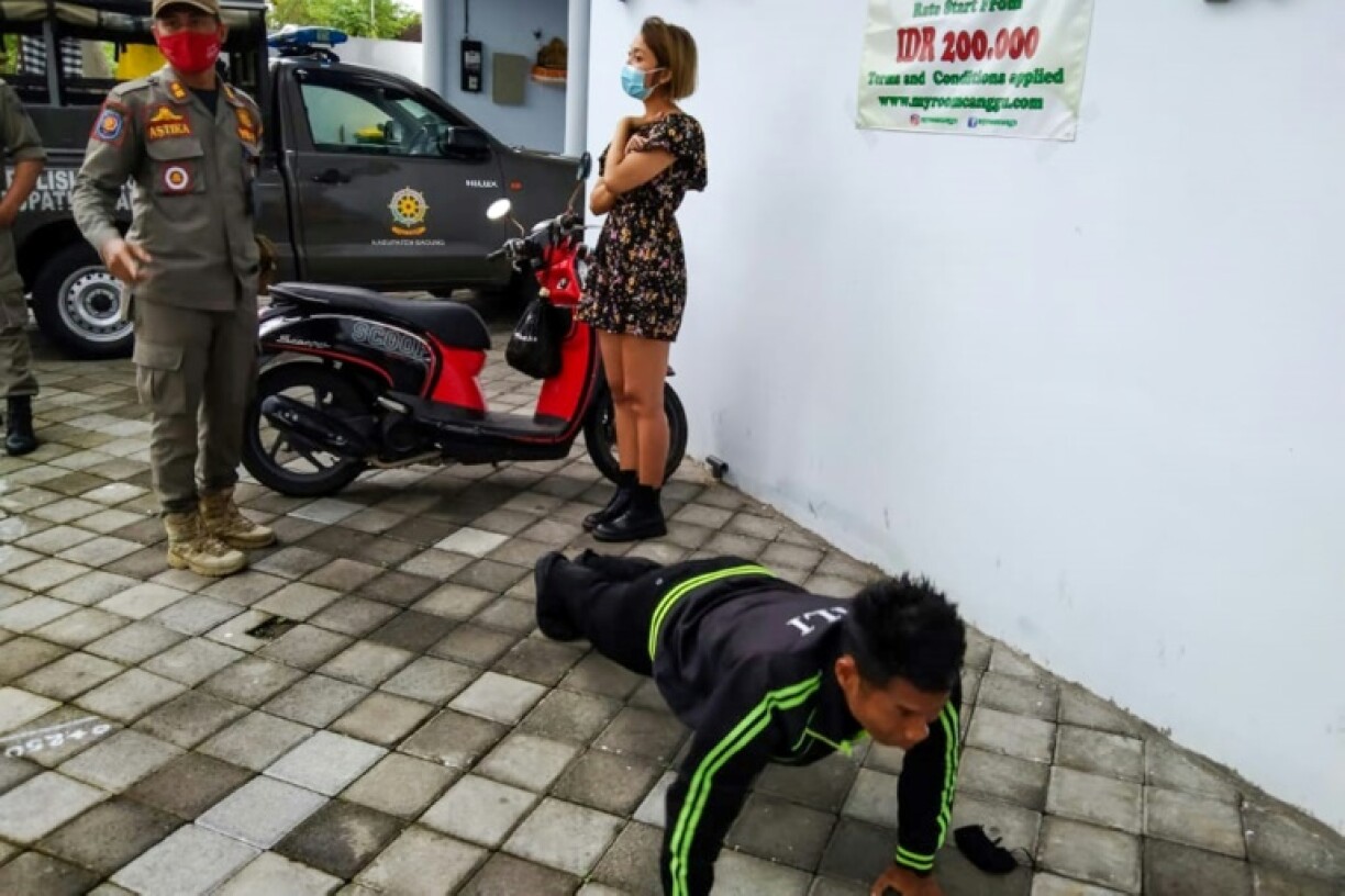 Sur des vidéos partagées sur les réseaux sociaux cette semaine, on peut voir des touristes en shorts et T-shirts s’exécuter, et faire des pompes dans la chaleur tropicale, sous le regard d’officiers du maintien de l’ordre masqués.