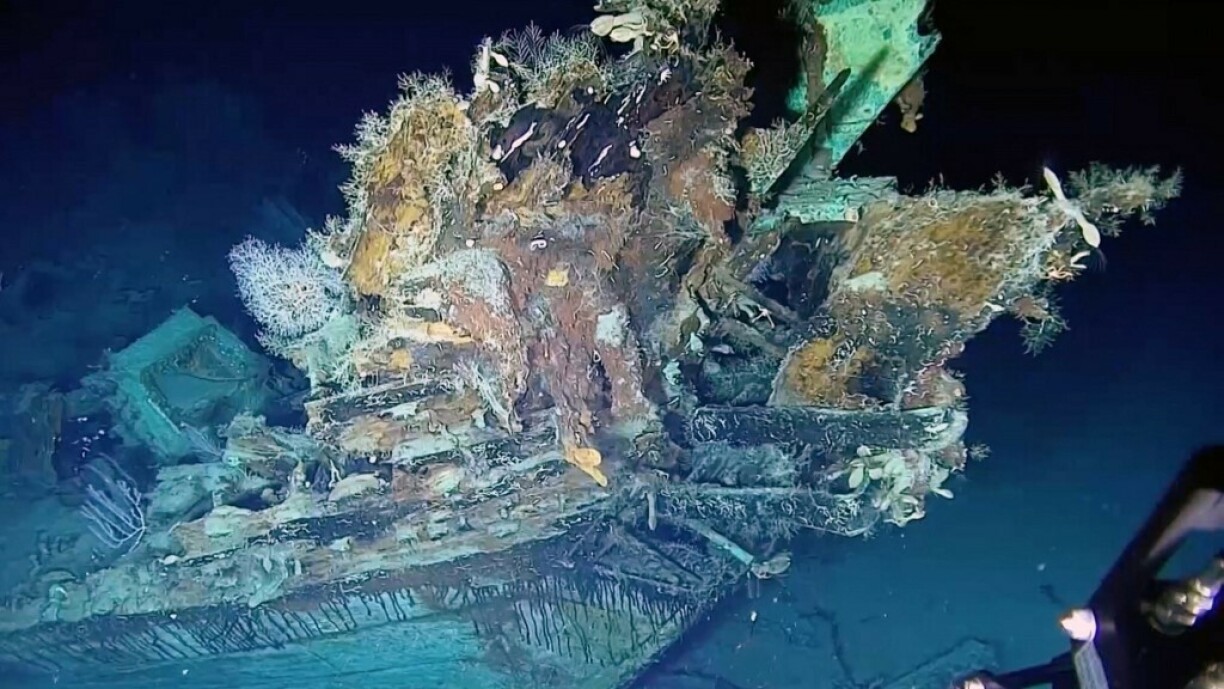Sur ces images, on distingue au fond de l’eau des canons en fonte, des pièces de vaisselles en porcelaine, des poteries, des bouteilles de verre, mais aussi des pièces apparemment en or. On voit également une partie de la proue du navire, couverte d’algues et de coquillages, et des restes de la charpente de la coque.
