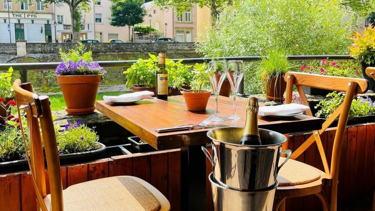 Le restaurant propose une “fine cuisine française influencée de saveurs méditerranéennes” que vous pourrez déguster sur une belle terrasse avec vue sur les faubourgs du Grund.