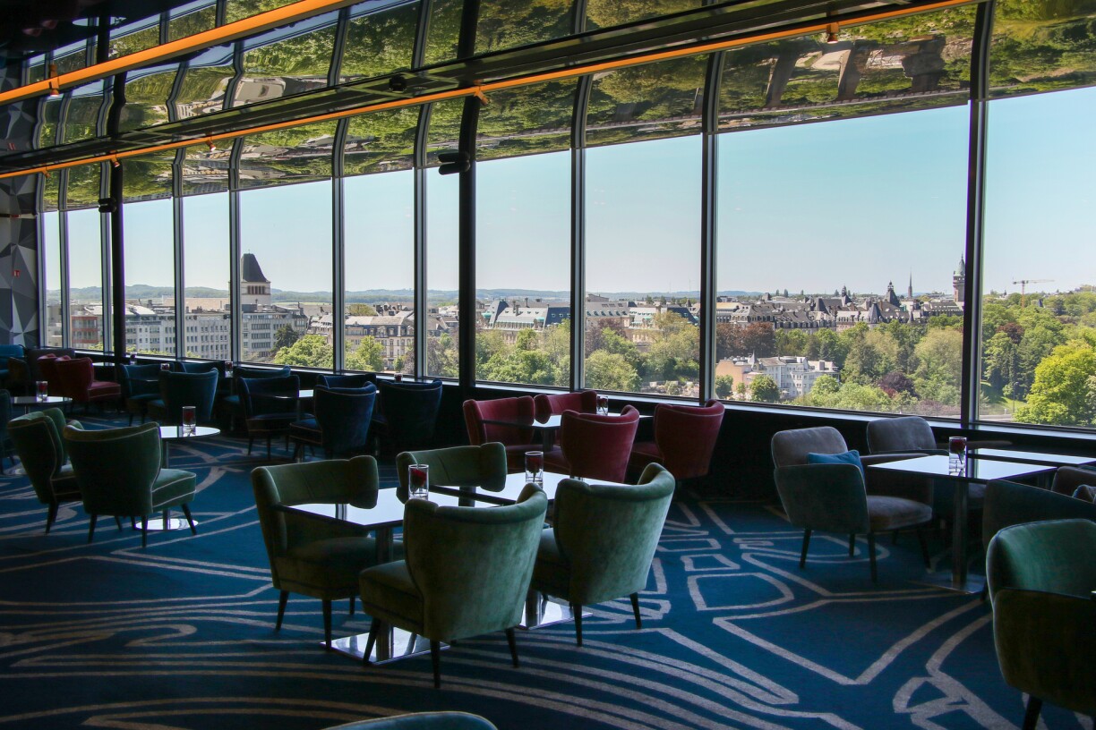 Perché au dernier étage du Sofitel Grand-Ducal, le Mu Luxembourg offre probablement une des plus belles vues de la Ville de Luxembourg.